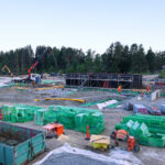 Monitoimikeskuksen peruskivi muurattiin toukokuussa, ja sen jälkeen pääsivät käyntiin eri lohkojen anturoiden muottityöt, raudoitukset ja valut. Kuitu- ja sähköreittien ja viemäripohjien kaivuut ja louhinnat tehtiin myös toukokuun alussa. Kaikkien louhintatöiden on tarkoitus valmistua viikon 24 aikana.