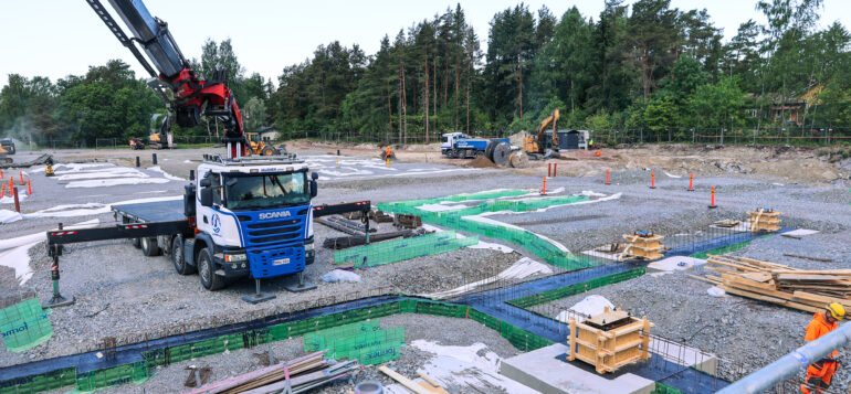 Uotilanrinteen monitoimikeskuksen työmaalla tehdään perustus- ja valutöitä