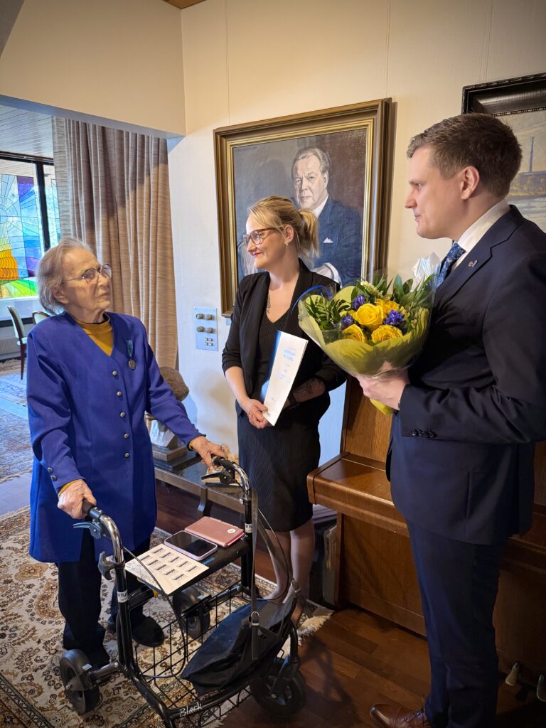 Sculptor Aila Salo received the Meripojat Award for her long career, which has left a lasting mark on Rauma’s cityscape. Since the 1970s, Salo has created several well-known metal sculptures, including Ihminen ja työ (Human and Work)at the Rauma shipyard gate and Vaikeuksien kautta voittoon (Through Difficulties to Victory)at the Rauma water tower hill. Her background includes a childhood shaped by war, participation in Lotta Svärd activities, and later roles on the boards of the Hollming shipyard company. Salo was previously awarded the Ruorimiehet Medal in 1988, and in 2020 the Lotta Svärd Foundation named her Lotta of the Year.